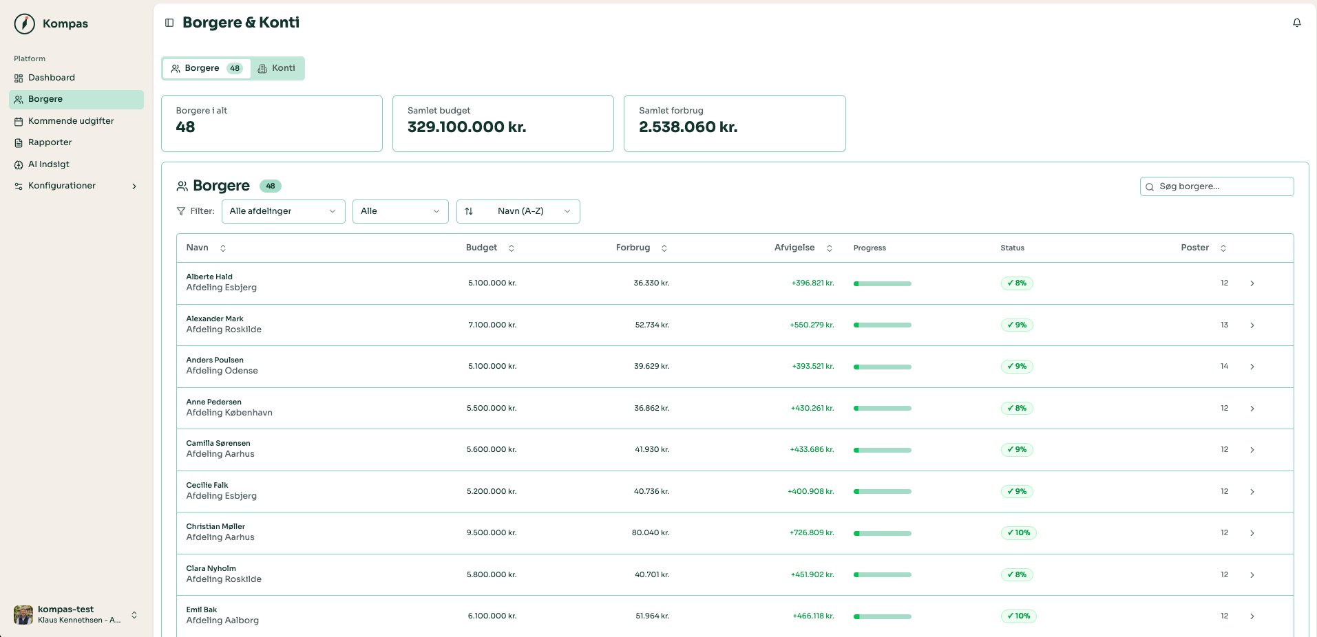 For direktion og økonomi handler Kompas om at kunne se risici, før de bliver til problemer. I får et løbende overblik over budgetter, afvigelser og udvikling på tværs af bostedet.